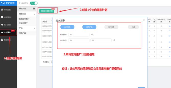 1.選擇要進(jìn)行爆款打造的產(chǎn)品進(jìn)行設(shè)置定向推廣