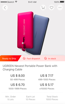 2,買家端Alibaba.com APP產(chǎn)品詳情頁,產(chǎn)品增加ready to ship的標簽