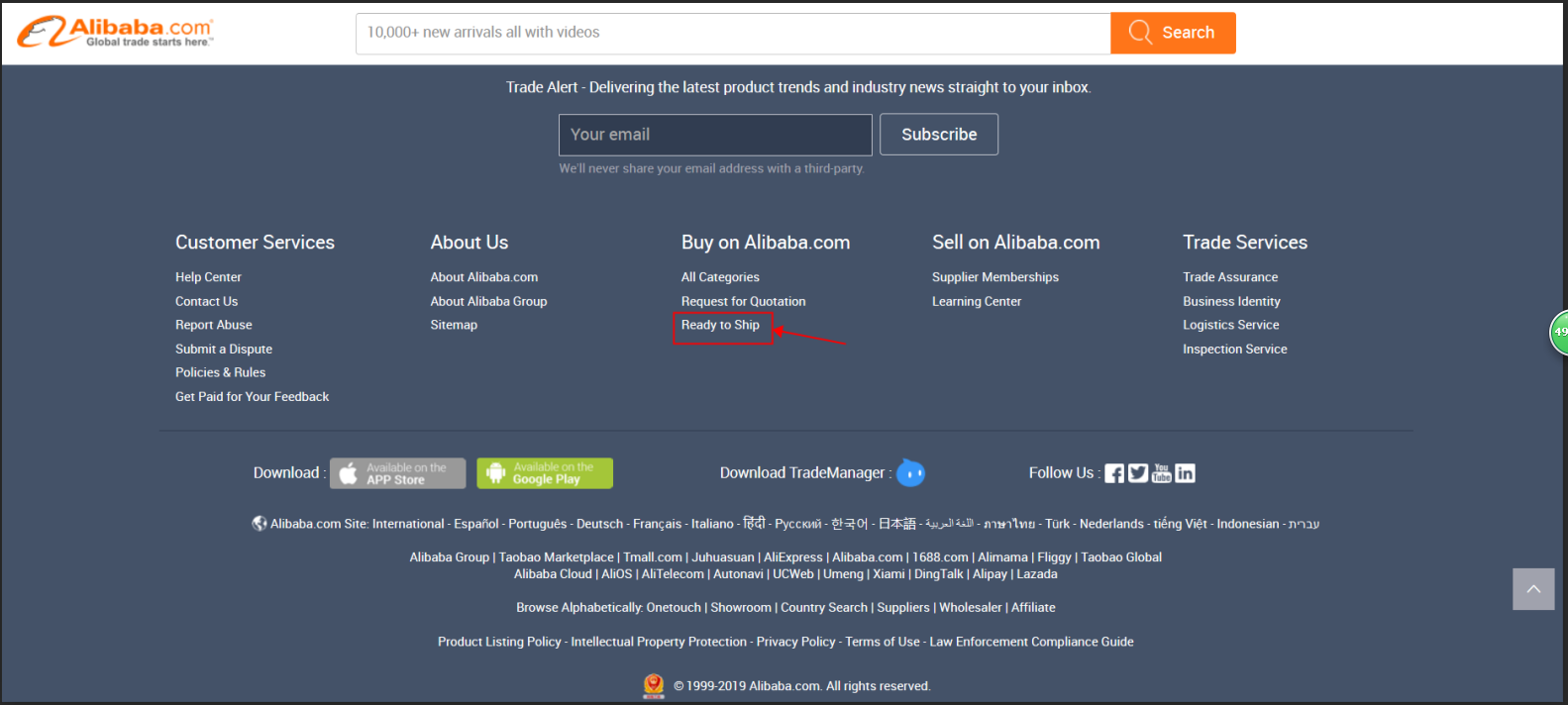 1,買家端Alibaba.com APP首頁增加Ready to ship頻道