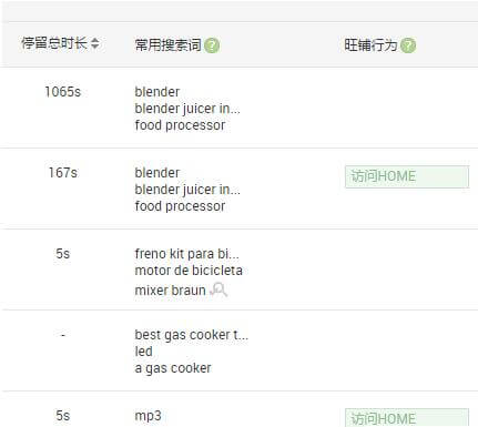 3.訪客詳情之常用搜索詞:整理訪客常用搜索詞,在里面找出使用次數(shù)比較多而且匹配你的產(chǎn)品的關(guān)鍵詞。這些關(guān)鍵詞會(huì)比你去自己翻譯,亂找有效很多很多,因?yàn)檫@是訪客使用的,訪客行為其實(shí)一定程度上代表著大部分買(mǎi)家的習(xí)慣,阿里排名規(guī)則中買(mǎi)家喜好程度占了很大的比重,所以我們?cè)谧霎a(chǎn)品的時(shí)候,要從各個(gè)方面去契合買(mǎi)家的習(xí)慣和愛(ài)好,從訪客詳情中提煉出買(mǎi)家常用搜索詞作為產(chǎn)品關(guān)鍵詞,這會(huì)是一個(gè)不錯(cuò)的方向!