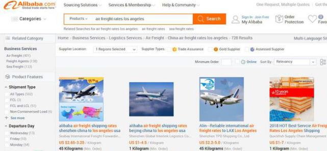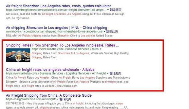 2. 以輸入" air shipping from shenzhen to los angeles"為例,客戶會找到兩種信息。