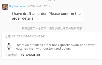 賣家發(fā)送訂單卡片或催付卡片后買家聊天框內(nèi)即可收到消息,有助于提升支付率