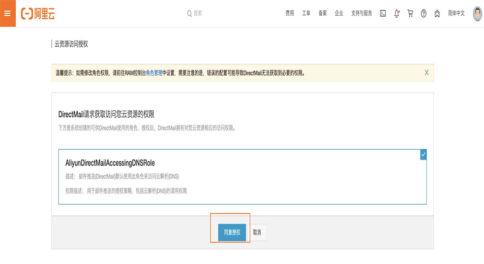 3)彈出授權(quán)頁面,操作“同意授權(quán)”,授權(quán)給系統(tǒng)自動幫助你進行解析配置。