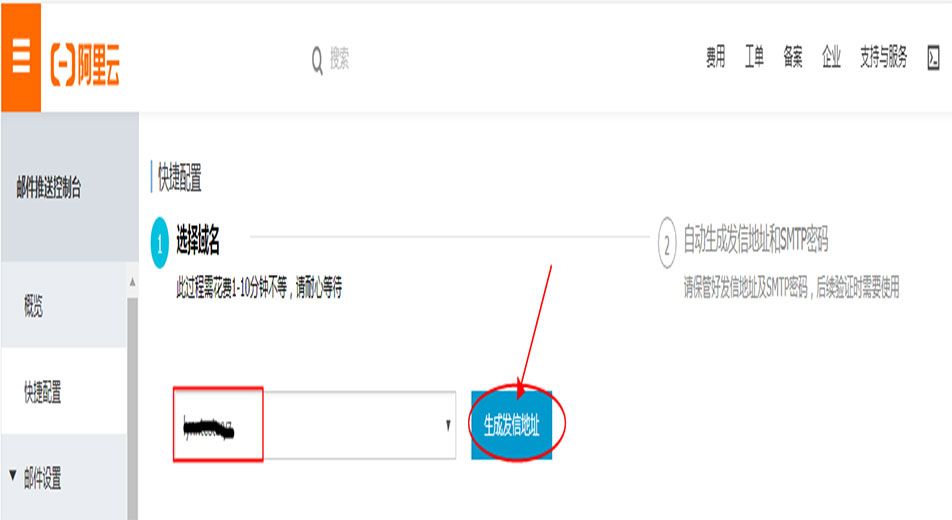 ① 選擇對應(yīng)的域名,點擊“生成發(fā)信地址”