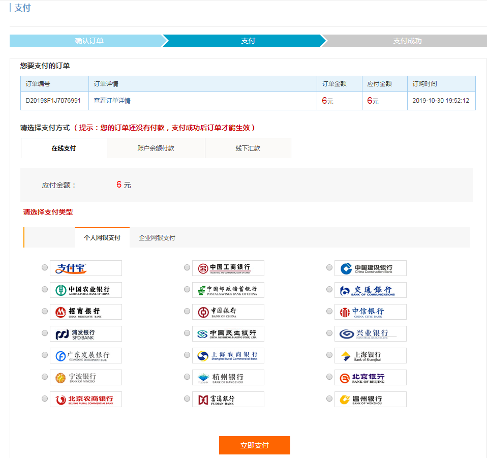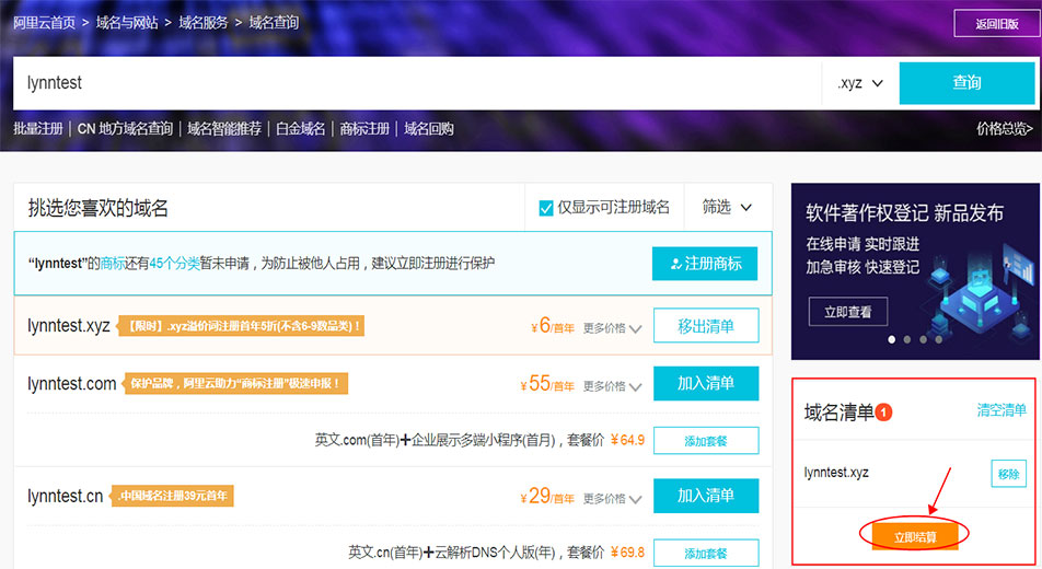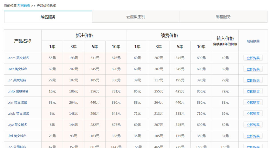 5)回到域名購買訂單頁面,刷新頁面,選擇域名信息,并點擊“立即購買”
