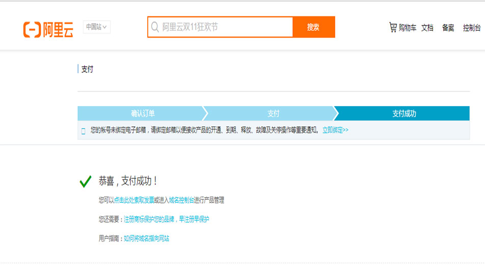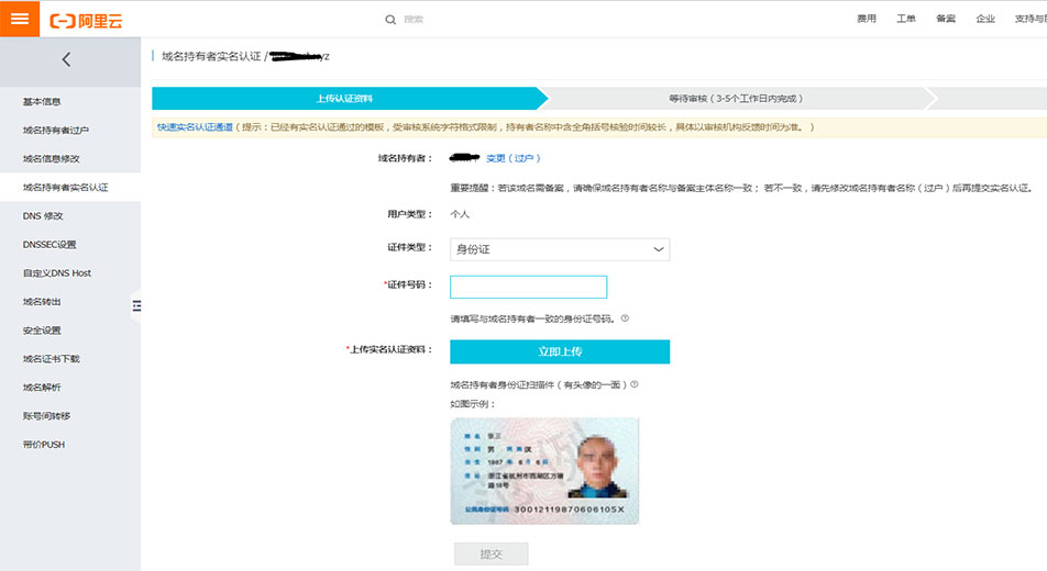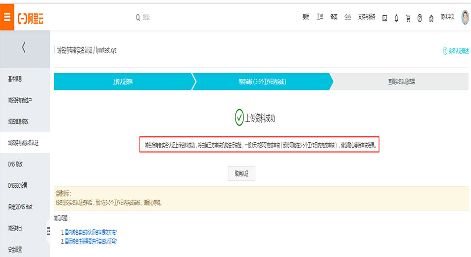 8)可索取發(fā)票或進入域名控制臺進行域名的實名認證(和阿里云實名認證不一樣)