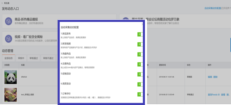 3.在彈出的界面上,可以用”開(kāi)關(guān)”控制相應(yīng)內(nèi)容的自動(dòng)發(fā)布與否。