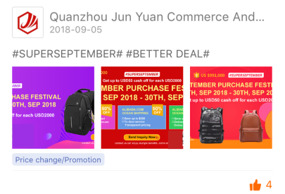 前期——收集素材,主推買家案例;加持熱度、吸引買家,如營銷類海報(bào)(介紹大促期間的店鋪活動(dòng)、主打產(chǎn)品、折扣優(yōu)惠、MOQ等等)