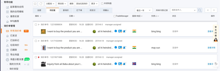 如果大家在跟進(jìn)每封詢盤的時候都能夠同時在標(biāo)題上花點(diǎn)心思,你的詢盤列表就會變成: