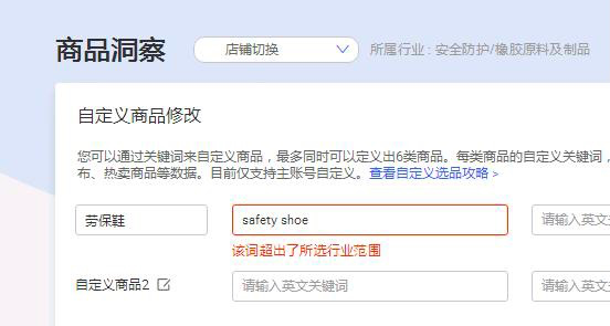 有客戶反饋,行業(yè)版商品洞察的自定義時,發(fā)現“該詞超出了所選行業(yè)范圍”,如下,怎么破?
