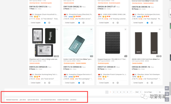 7)在國際站主頁的搜索框搜索,在搜索頁面底部會看到跟輸入的搜索詞相關(guān)的一些詞