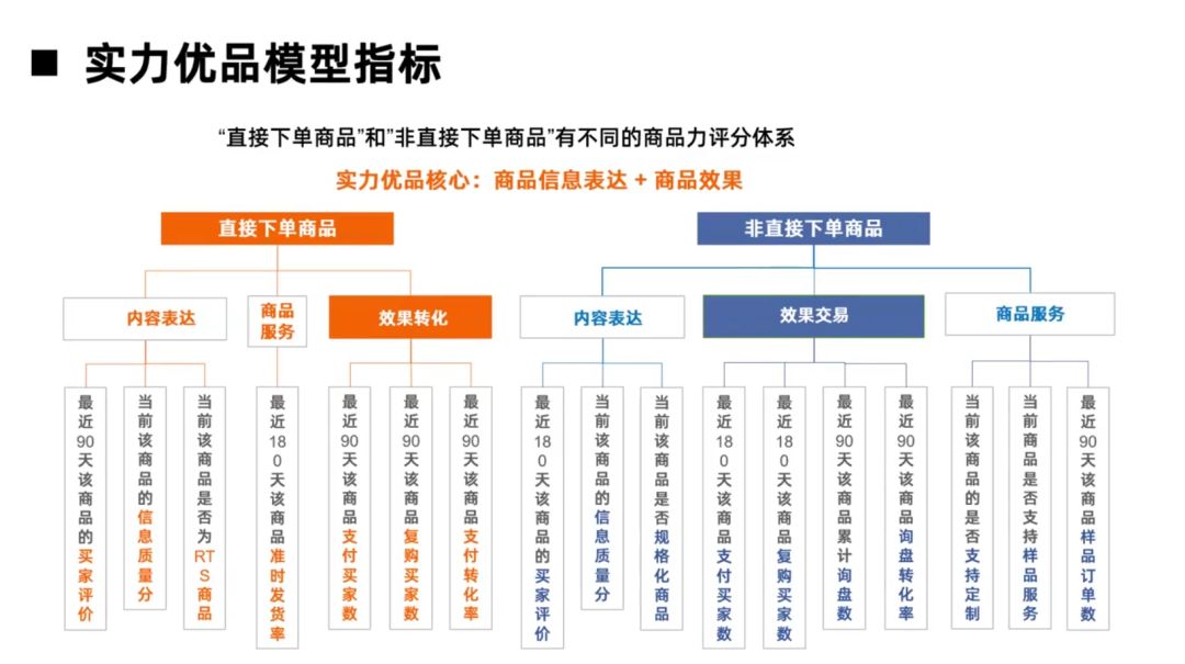 直接下單商品和非直接下單商品的數(shù)據(jù)指標(biāo)也有所不一樣,非直接下單商品主要考核最近180天的數(shù)據(jù)情況,直接下單品則是考核90天的數(shù)據(jù)。主要內(nèi)容看下圖: