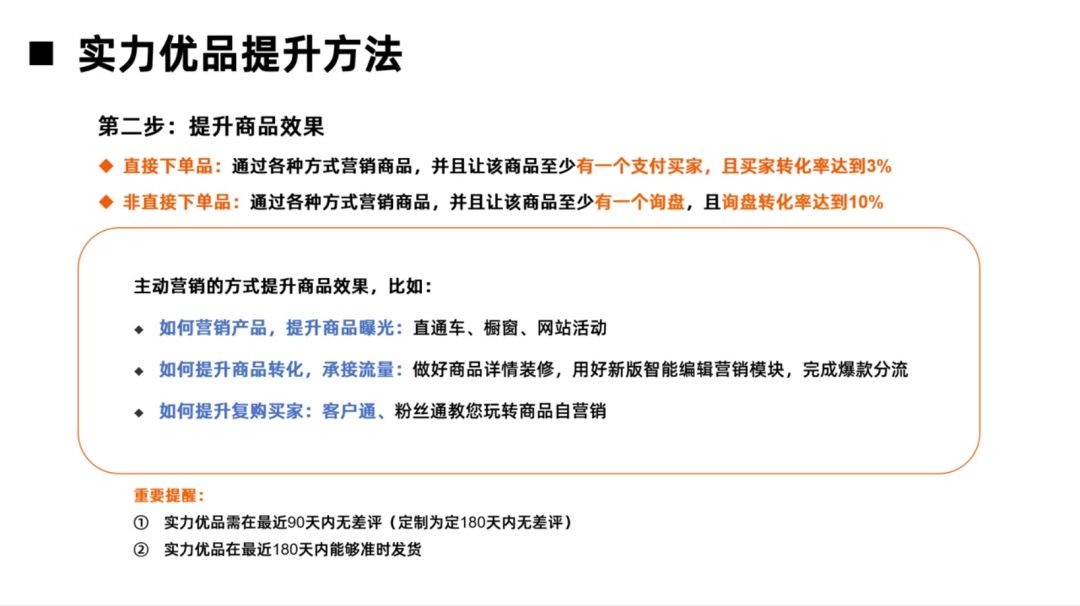 因此,讓店鋪內(nèi)更多商品達(dá)到實力優(yōu)品的層級,有利于平臺的成長,有助于獲取更多流量曝光和成交機(jī)會。