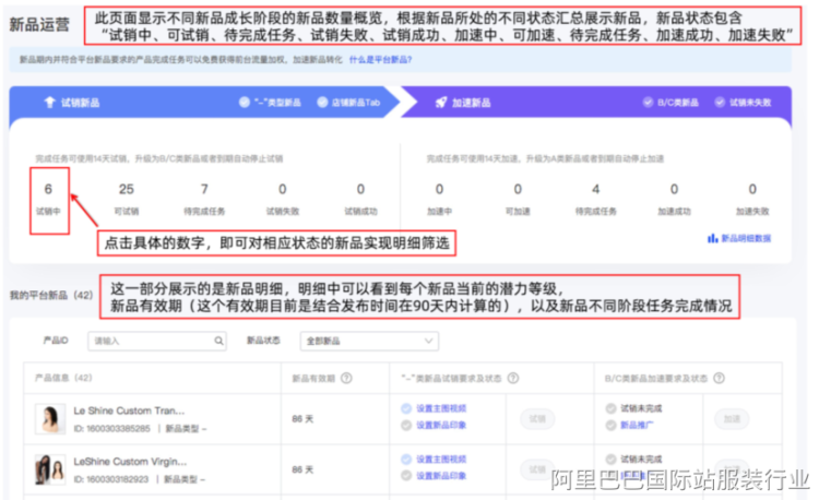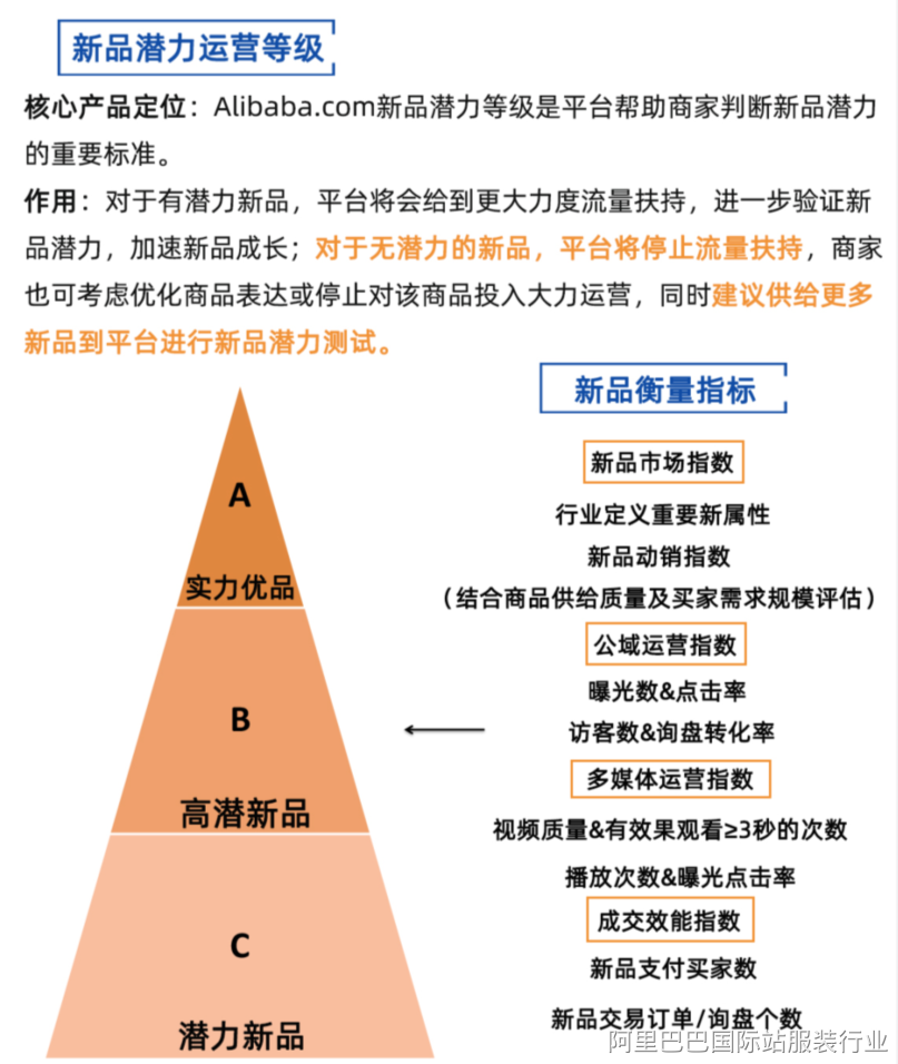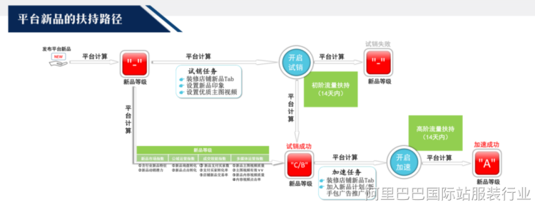 權(quán)益:滿(mǎn)足新品定義的品即為潛力新品,獲得14天的初階流量扶持,14天后如果試銷(xiāo)成功則可成為“高潛新品”或繼續(xù)保持“潛力新品”,獲得14天的高階流量扶持,如加速成功則成為“實(shí)力優(yōu)品”。