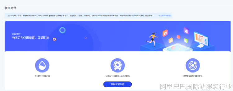 注意:如果進(jìn)入該位置看不到“新品運(yùn)營(yíng)”界面,而是顯示以下banner圖,說(shuō)明店鋪里沒(méi)有商品被判斷為新品,建議到產(chǎn)品運(yùn)營(yíng)工作臺(tái)中,按“新品定招”開(kāi)頭的主題發(fā)品。