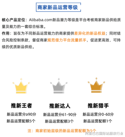 額外配額:如商家提升新品運(yùn)營(yíng)等級(jí),可獲得更多的新品試銷(xiāo)&加速配額。