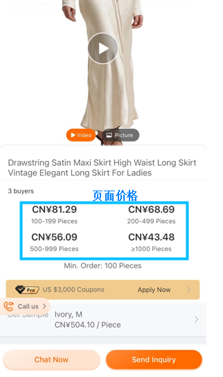 價(jià)格對(duì)比為:頁面上對(duì)應(yīng)數(shù)量的價(jià)格(如有折扣為折后價(jià)格)和實(shí)際成交訂單同樣數(shù)量范圍對(duì)應(yīng)價(jià)格的比較。