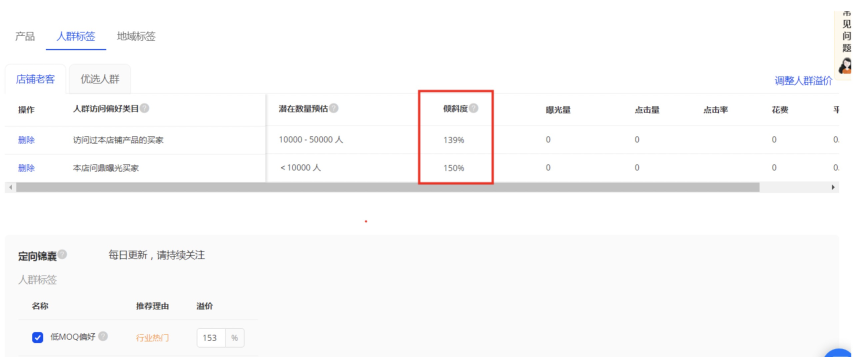 2、商家可在計劃中,自主設(shè)置人群、地域標(biāo)簽的重點(diǎn)投放設(shè)置,系統(tǒng)將在您投放的基礎(chǔ)上,進(jìn)行對應(yīng)人群的重點(diǎn)投放,(含特定行業(yè)人群標(biāo)簽)