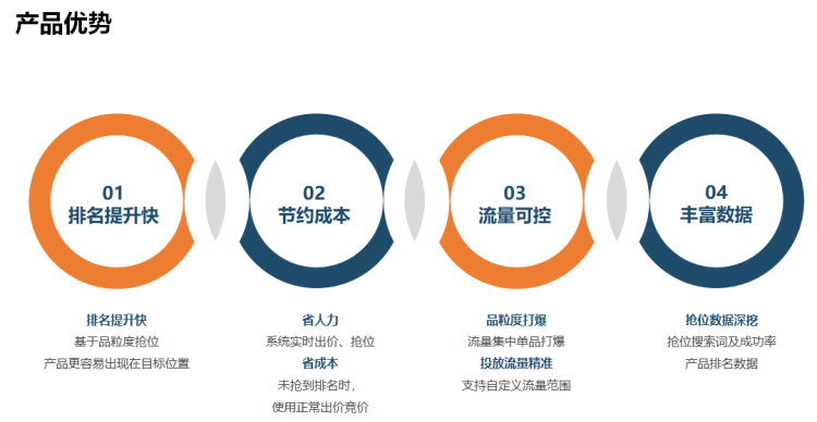 投放優(yōu)質(zhì)流量,全方位提升店鋪中的優(yōu)品廣告排名(優(yōu)品:產(chǎn)品運(yùn)營(yíng)工作臺(tái)的實(shí)力優(yōu)品和爆品),從而獲取更多曝光和點(diǎn)擊,延長(zhǎng)優(yōu)品生命周期。