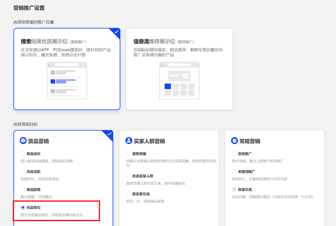 優(yōu)品搶位針對(duì)直通車三端的搜索詞流量進(jìn)行搶位,目前不支持分端搶位