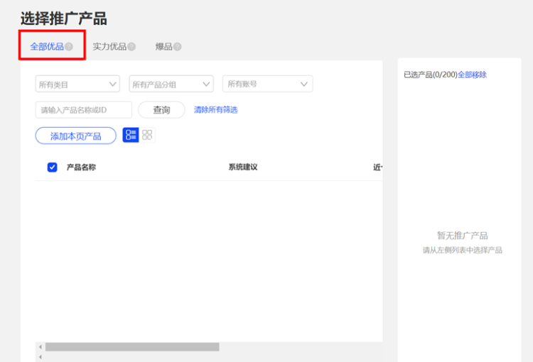思路1:系統(tǒng)篩選出實(shí)力優(yōu)品和爆品,直接選擇【全部?jī)?yōu)品】這個(gè)tab下的商品即可
