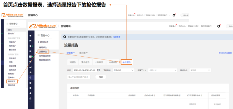 搶位成功率:計(jì)劃維度數(shù)據(jù),本計(jì)劃內(nèi)目標(biāo)排名的曝光量/總曝光量,無(wú)數(shù)據(jù)時(shí)用“--”展示。