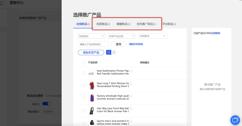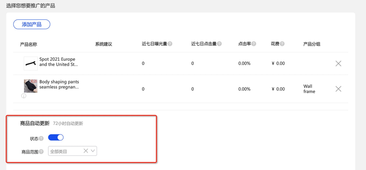 您可以根據(jù)自身需求設(shè)置推廣產(chǎn)品,也可以根據(jù)系統(tǒng)的商品建議進(jìn)行選品;