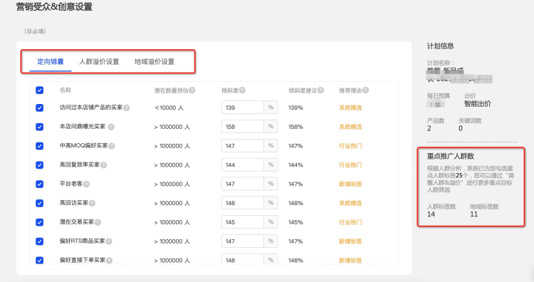 一定要記得設(shè)置重點(diǎn)推廣人群哦!可以幫助你: