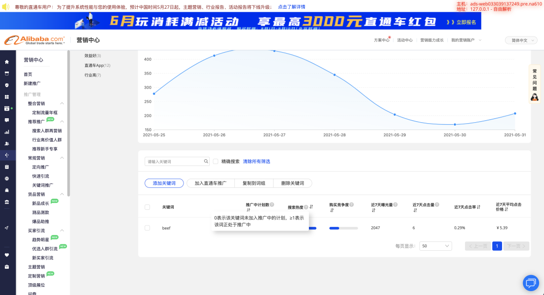 推廣中計(jì)劃數(shù):0表示該關(guān)鍵詞未加入推廣中的計(jì)劃,≥1表示該詞已加入推廣中計(jì)劃的數(shù)量