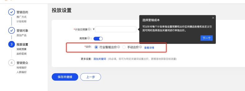 您可以選擇:行業(yè)智能出價,或自主設置最高出價;