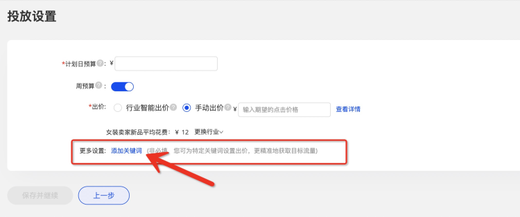 可以在計劃設置時,添加關鍵詞,提升投放精準度,注意,該計劃不支持搶位;