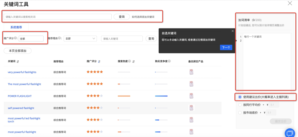 6、自選關鍵詞與出價