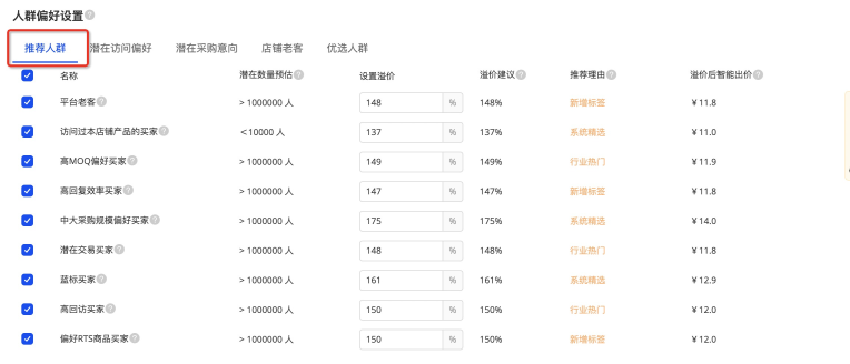 您也可以根據(jù)您的人群偏好來選擇合適的人群,建議直接在系統(tǒng)為您推薦的人群當中進行選擇哦~