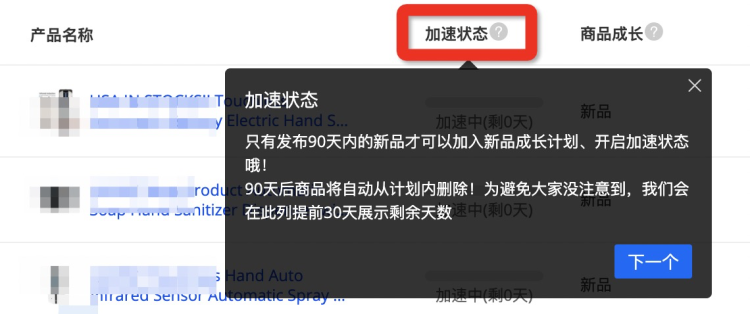 加速中:當前您在90天內(nèi)新發(fā)布的商品且正處于推廣中,享受新品的特定扶持;