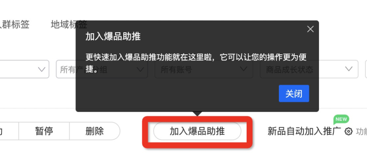 4、增加【高潛商品】,可篩選加入【爆品助推】功能,提升操作體驗;