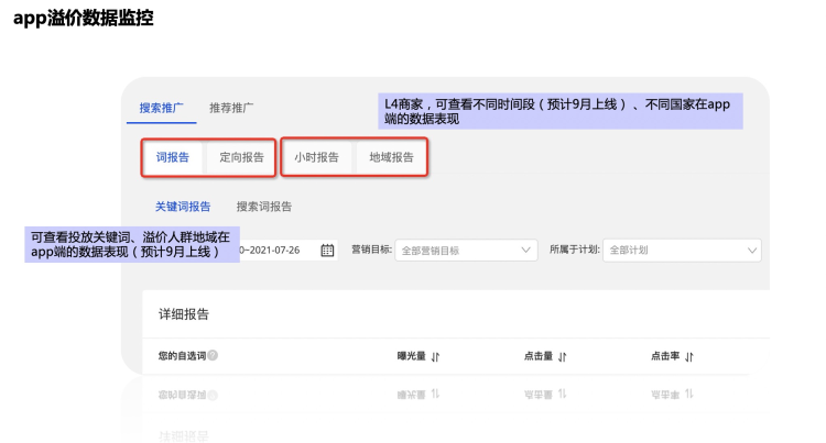 ③實現(xiàn)分端數(shù)據(jù)查看:了解app端在:關(guān)鍵詞(搜索)、品(搜索/推薦)、人群等不同緯度的數(shù)據(jù)表現(xiàn)(搜索/推薦),廣告買家畫像更清晰,實現(xiàn)精細化運營;