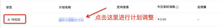 您報名后,如果當前計劃還未開啟,您可以在對應計劃類型管理界面,查看處于待投放階段的計劃;即在投放前,您可以針對【待投放】的計劃,進行商品、預算、出價的調整與優(yōu)化;