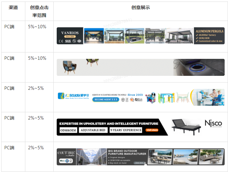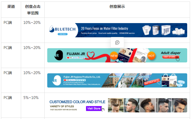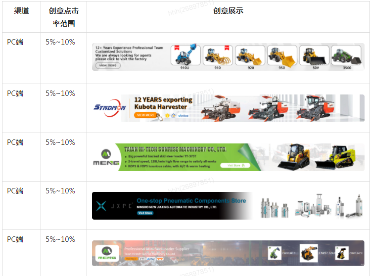 點(diǎn)擊率為該創(chuàng)意近30天點(diǎn)擊率,趕快欣賞下優(yōu)秀的創(chuàng)意,盡快優(yōu)化自身店鋪創(chuàng)意吧