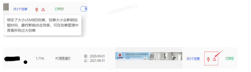 劃重點:如下圖當一個創(chuàng)意,大于等于5MB時,系統會給出“紅色三角”提醒預警。