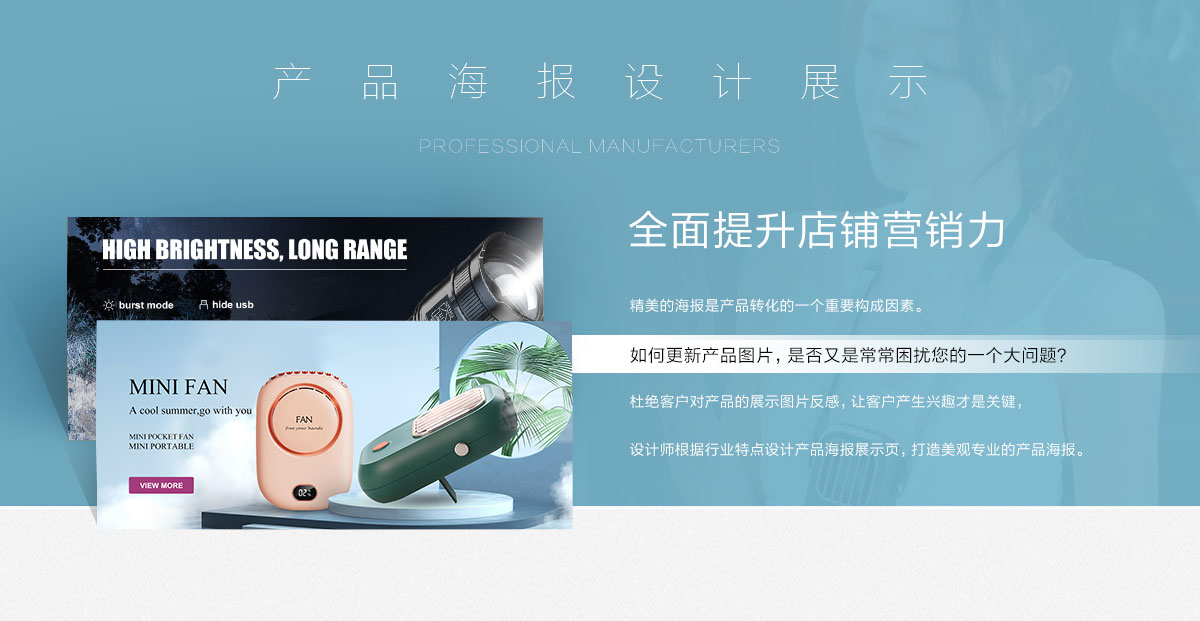 設計師根據(jù)行業(yè)特點設計海報等展示內(nèi)容,體現(xiàn)賣家的專業(yè)性,提升訪客的體驗感