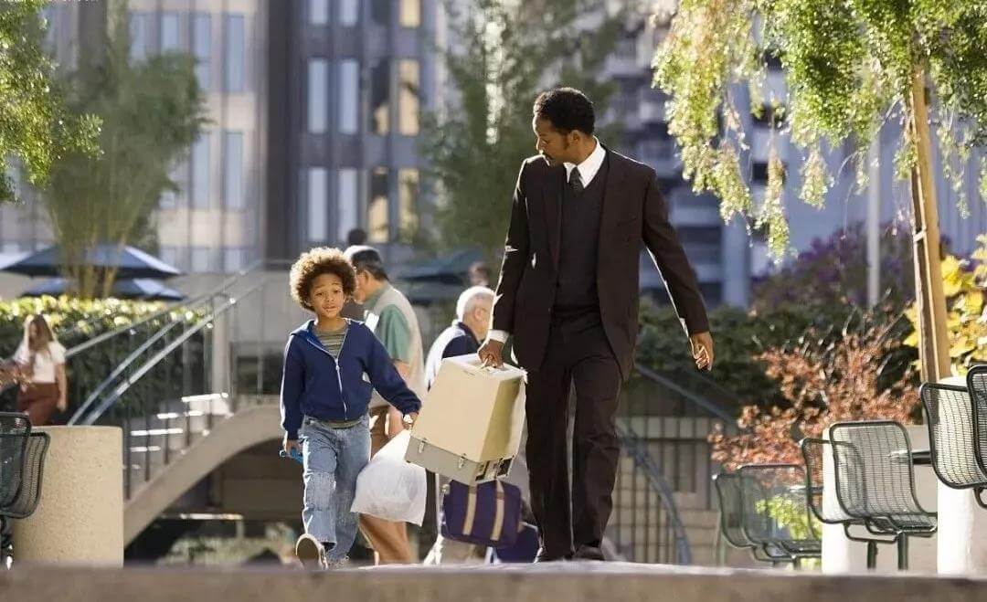 很多人應該看過這部電影,男主生活落魄,事業(yè)不順,被妻子拋棄,和兒子相依為命,住過收容所,在公廁過過夜,交不起罰單,被人唾棄。一邊推銷醫(yī)療儀器謀生,一邊抓住股票投資公司實習的機會,每天拼命的打電話給客戶,坐最后一班車回家...