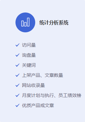 營(yíng)銷(xiāo)型每頁(yè)內(nèi)置TKD,全站帶有網(wǎng)頁(yè)數(shù)據(jù)統(tǒng)計(jì),更利于搜索引擎抓取,最大限度的將詢(xún)盤(pán)轉(zhuǎn)化為訂單,讓品牌官網(wǎng)連接一切。